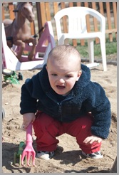 Here she is showing me the rock she found, while squatting down similar to the way I was while taking her picture. What a cutey!